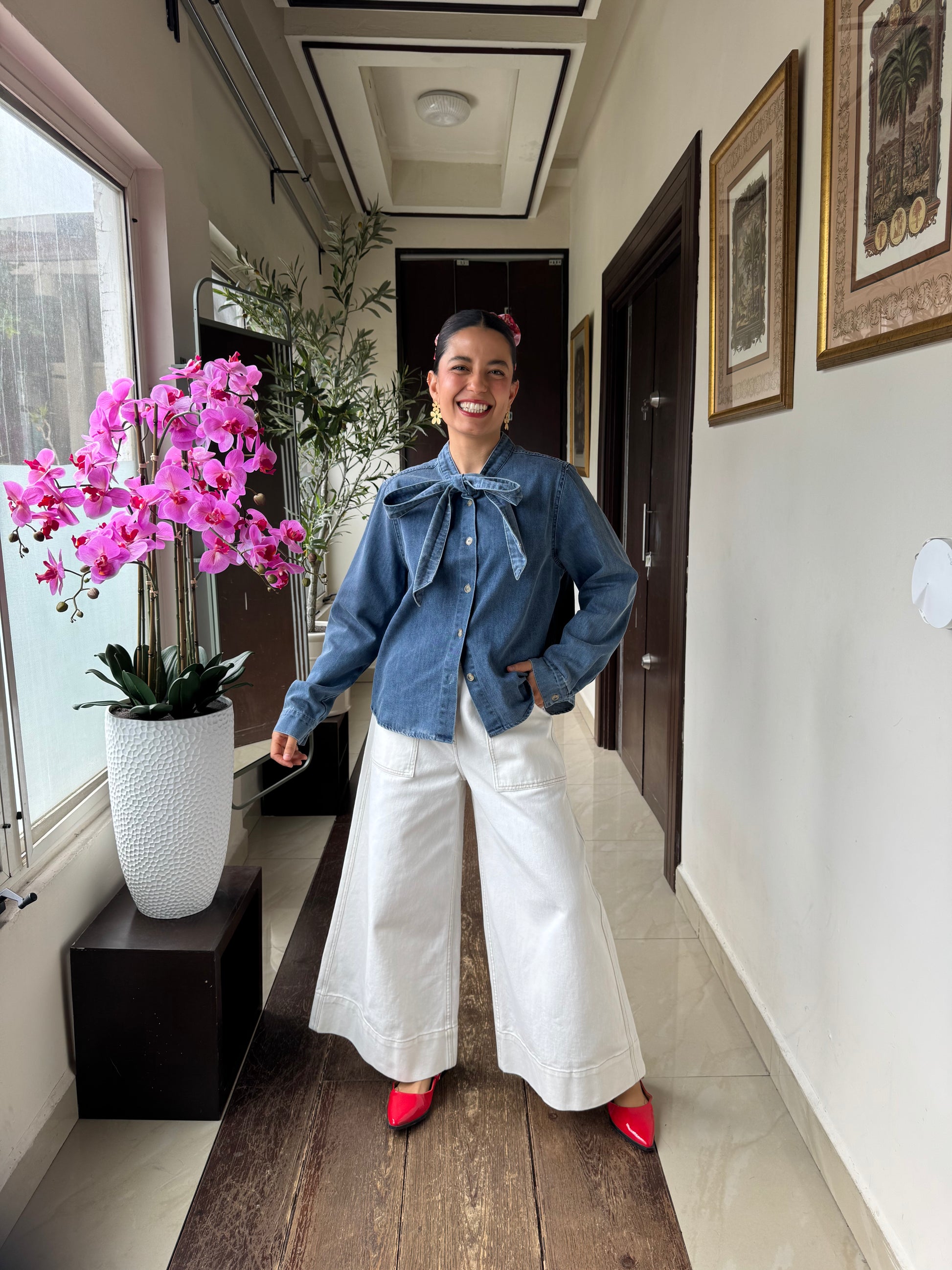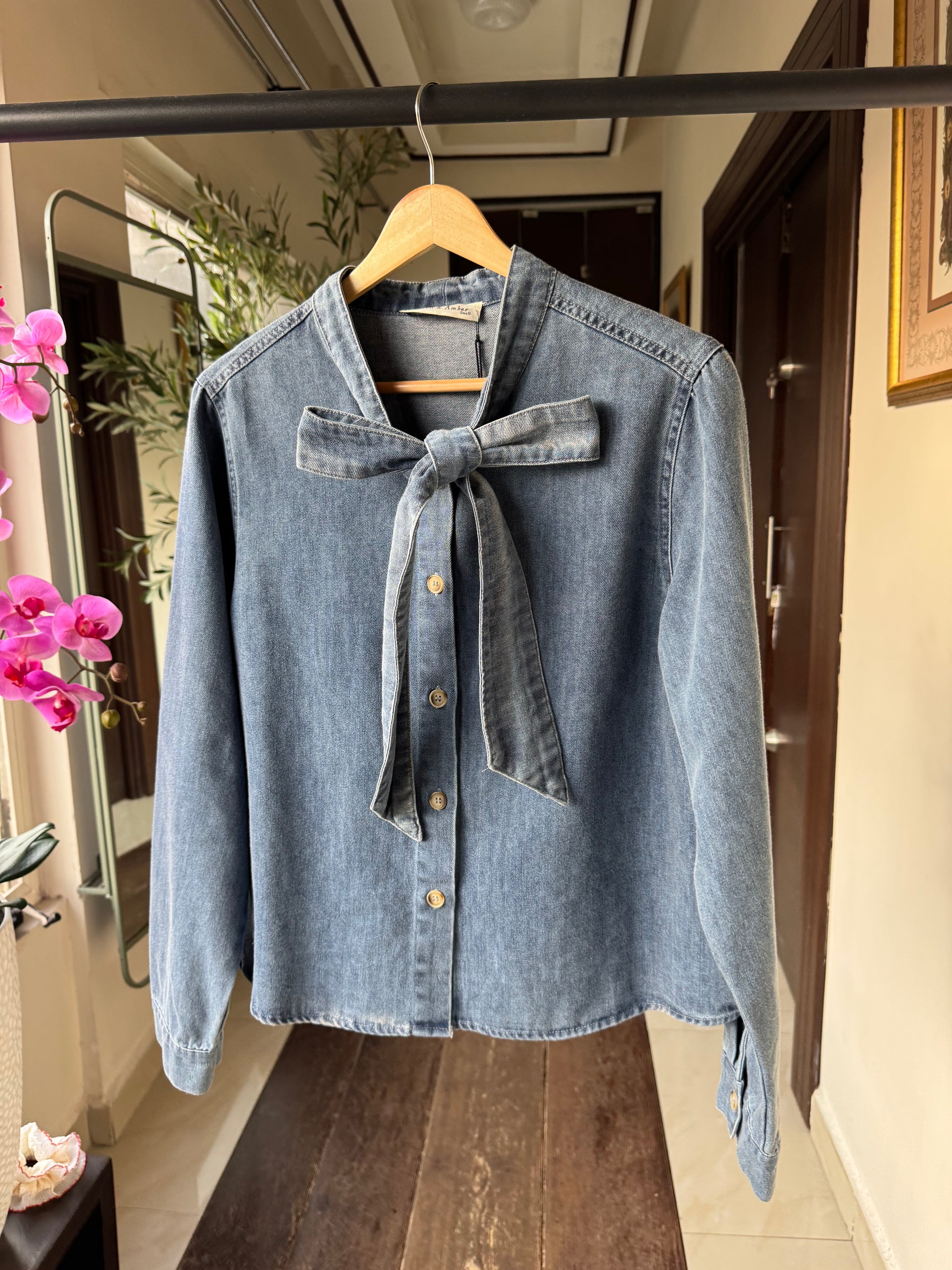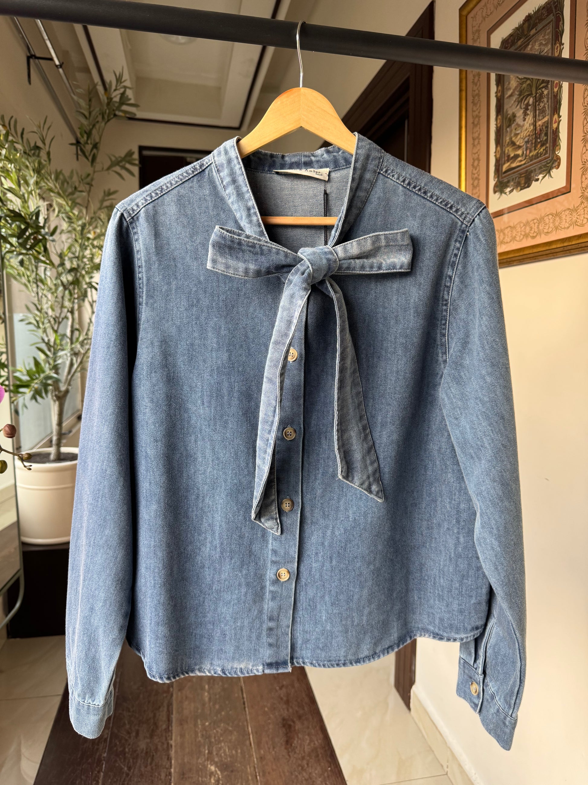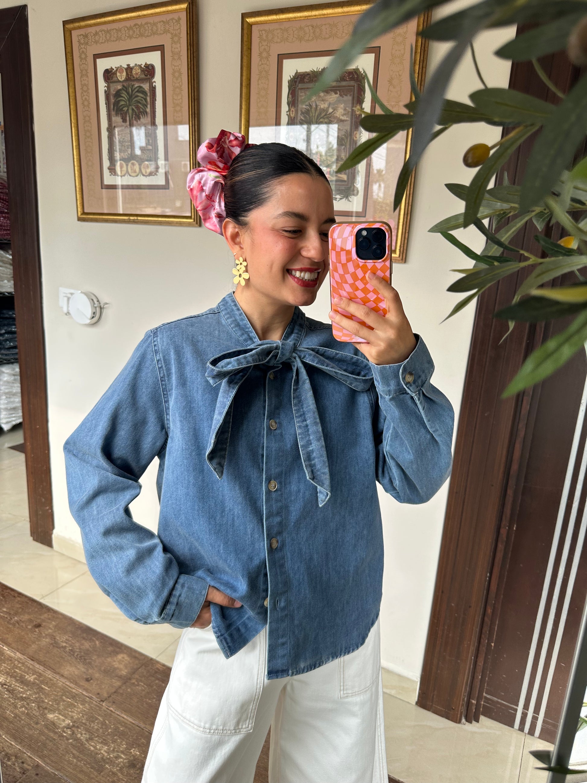 BLUSA DE BOTONES CON LAZOS EN EL CUELLO