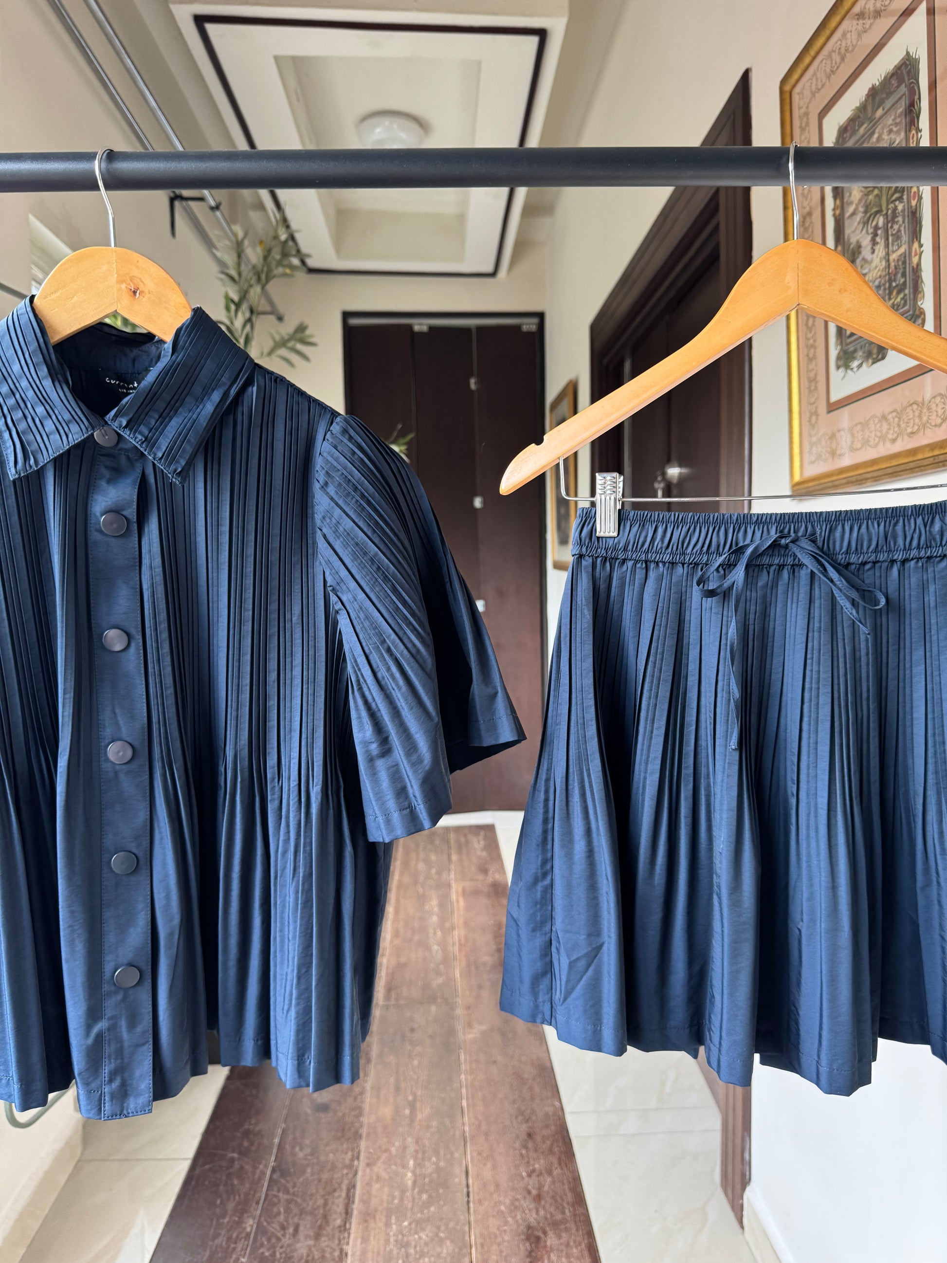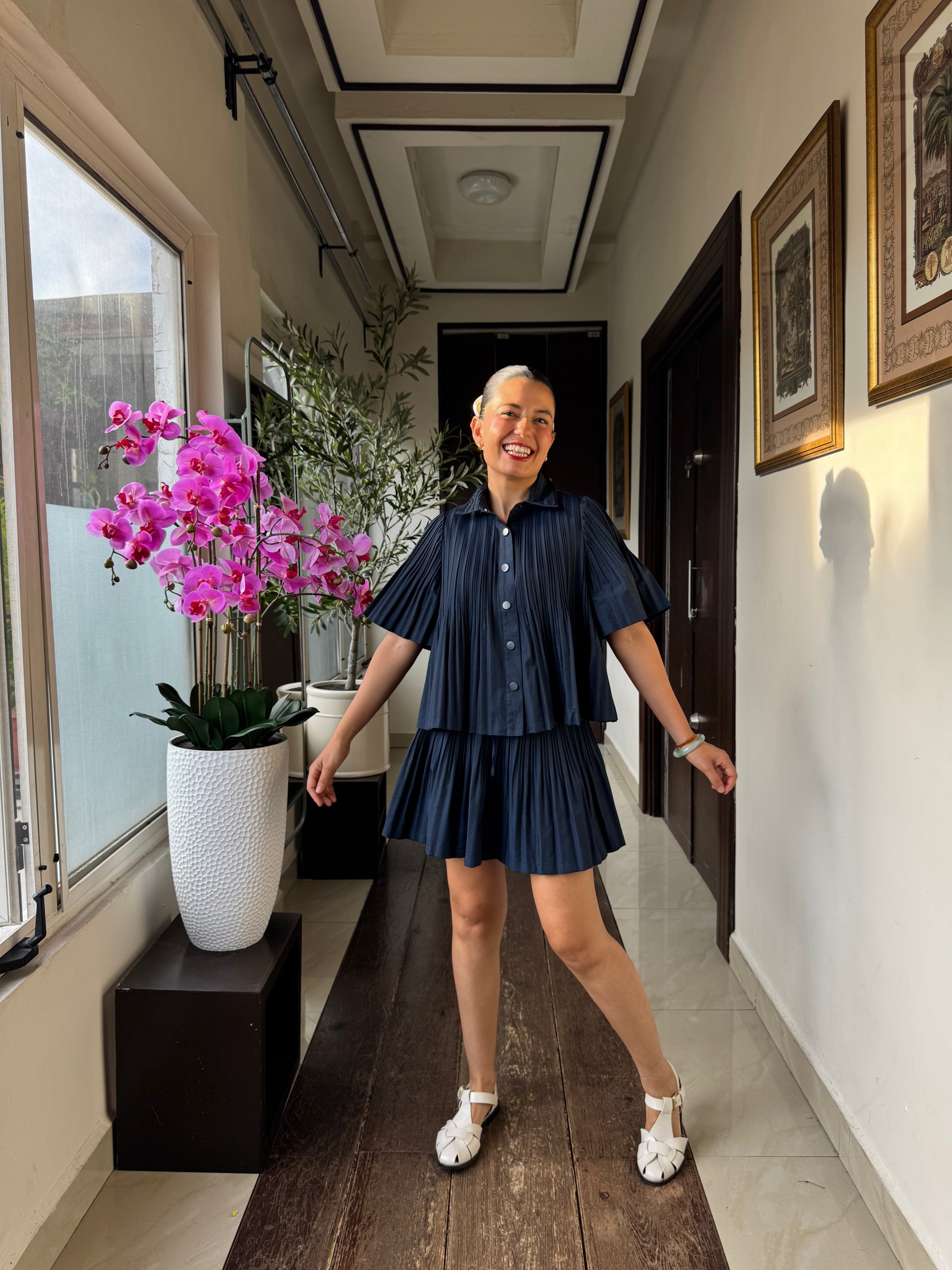 Set blusa y falda plisada con cintura elástica
