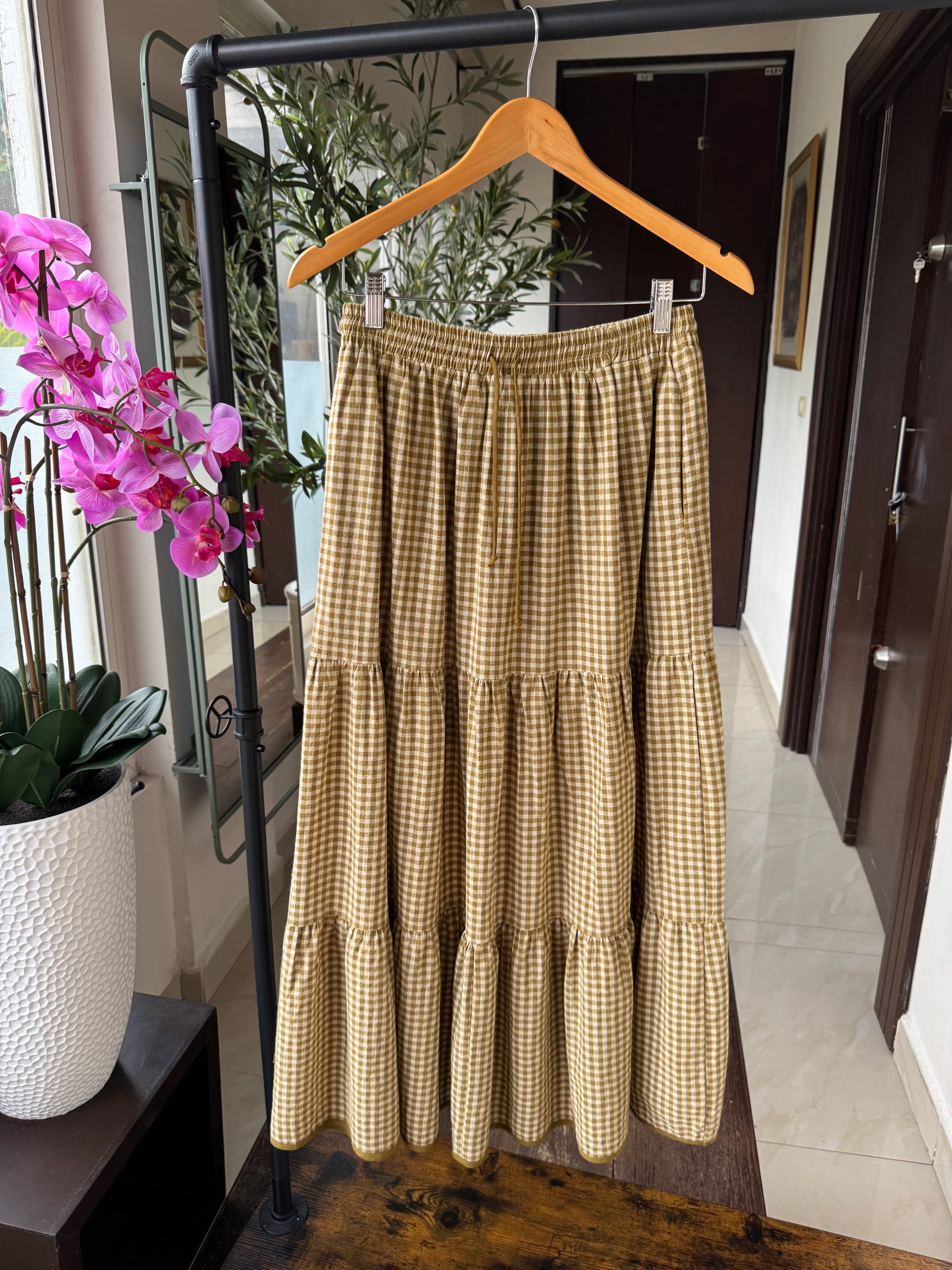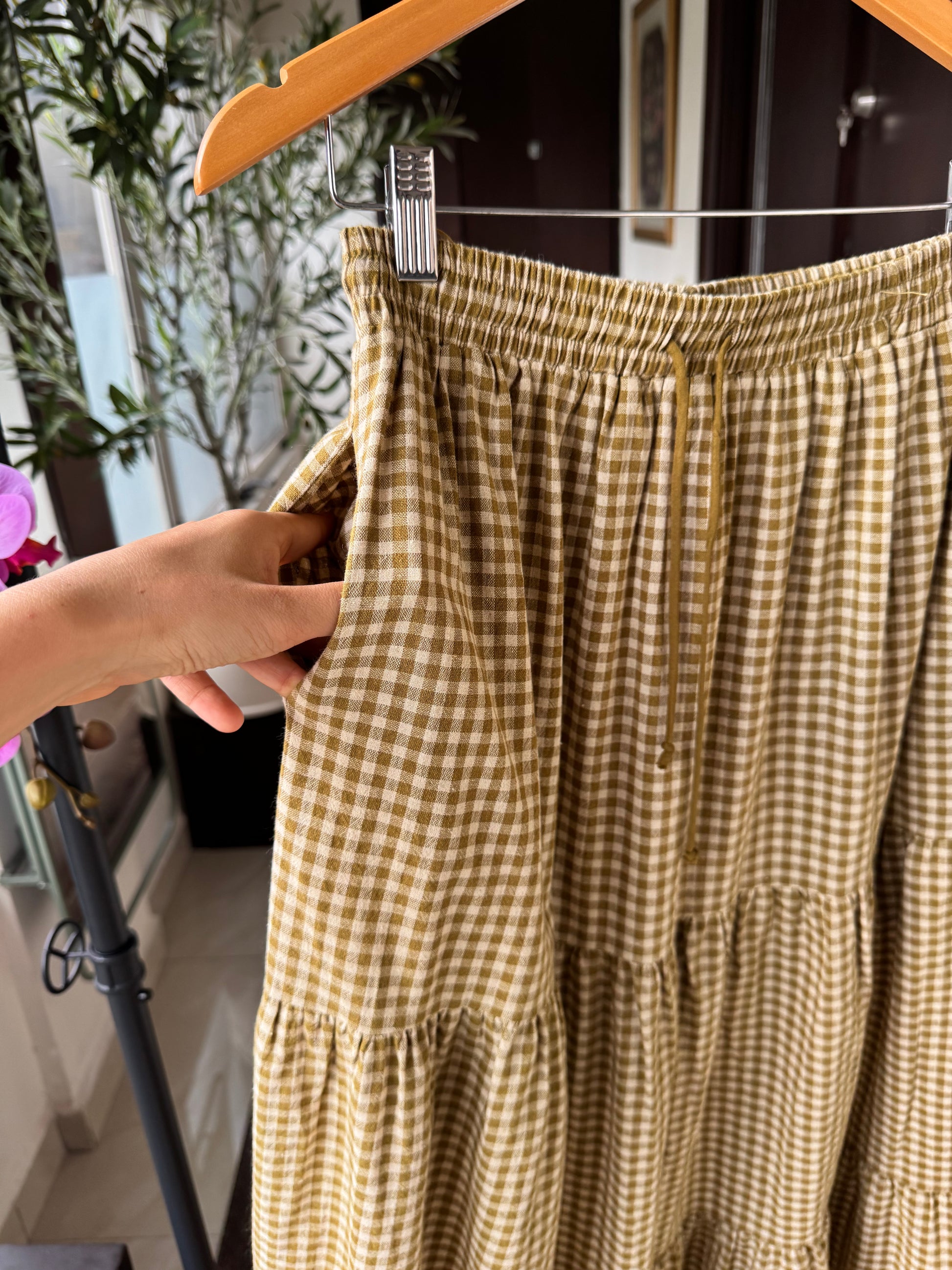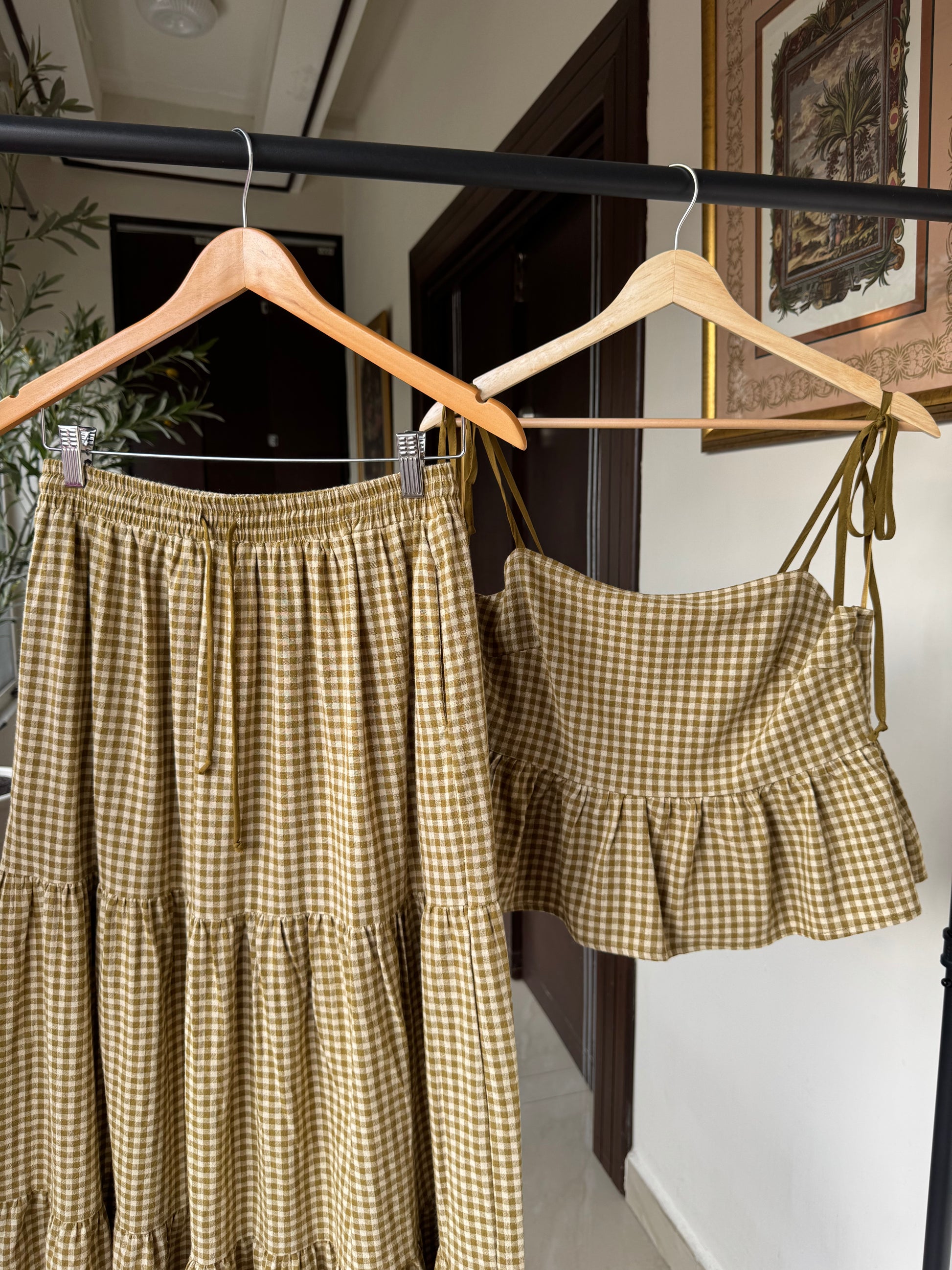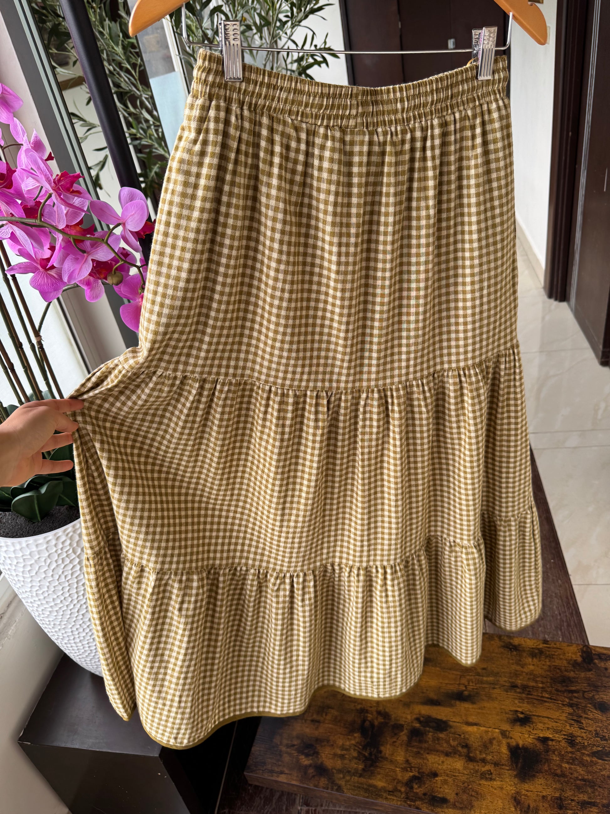 SET BLUSA Y FALDA MIDI, VERDE A CUADROS