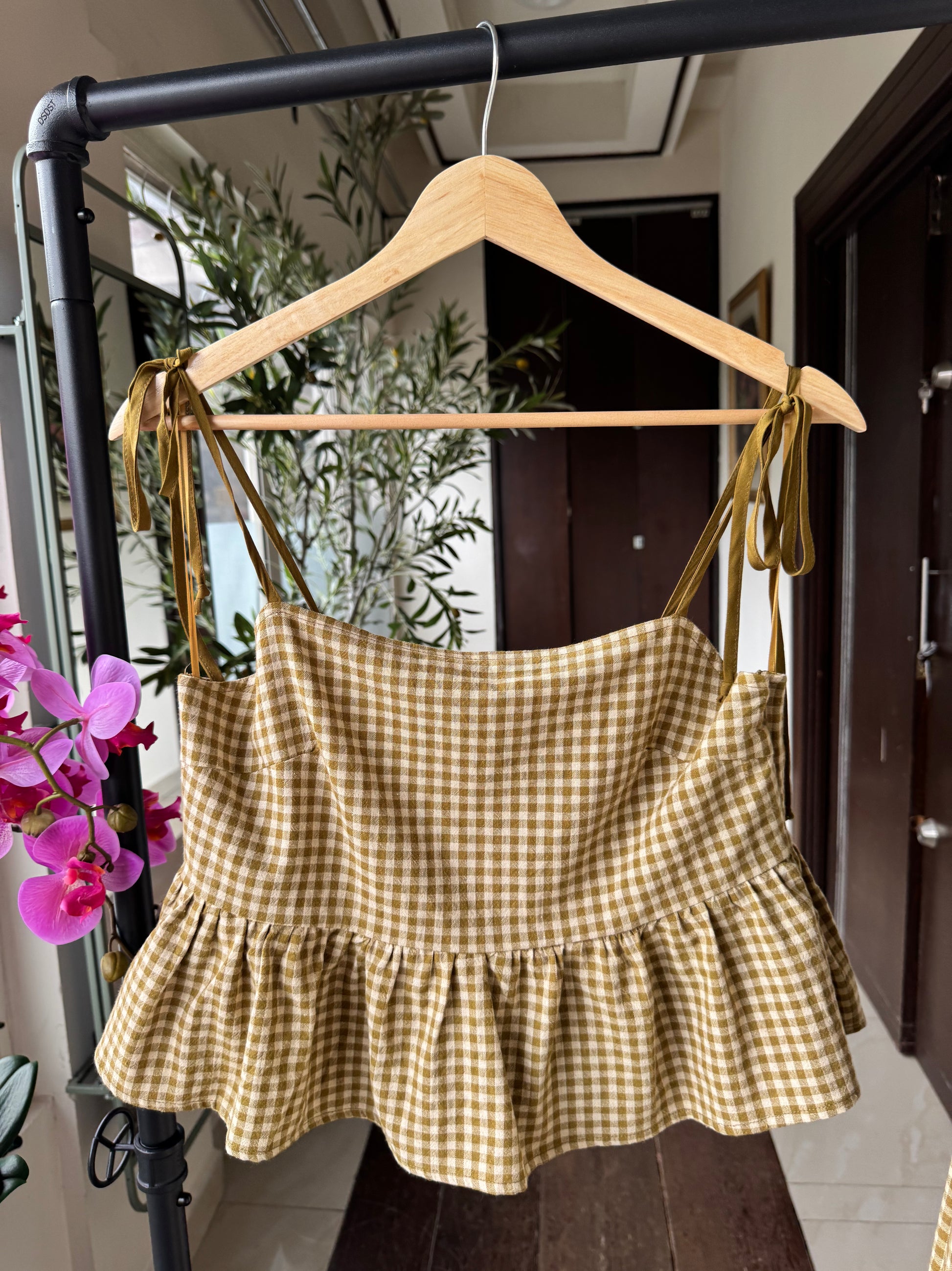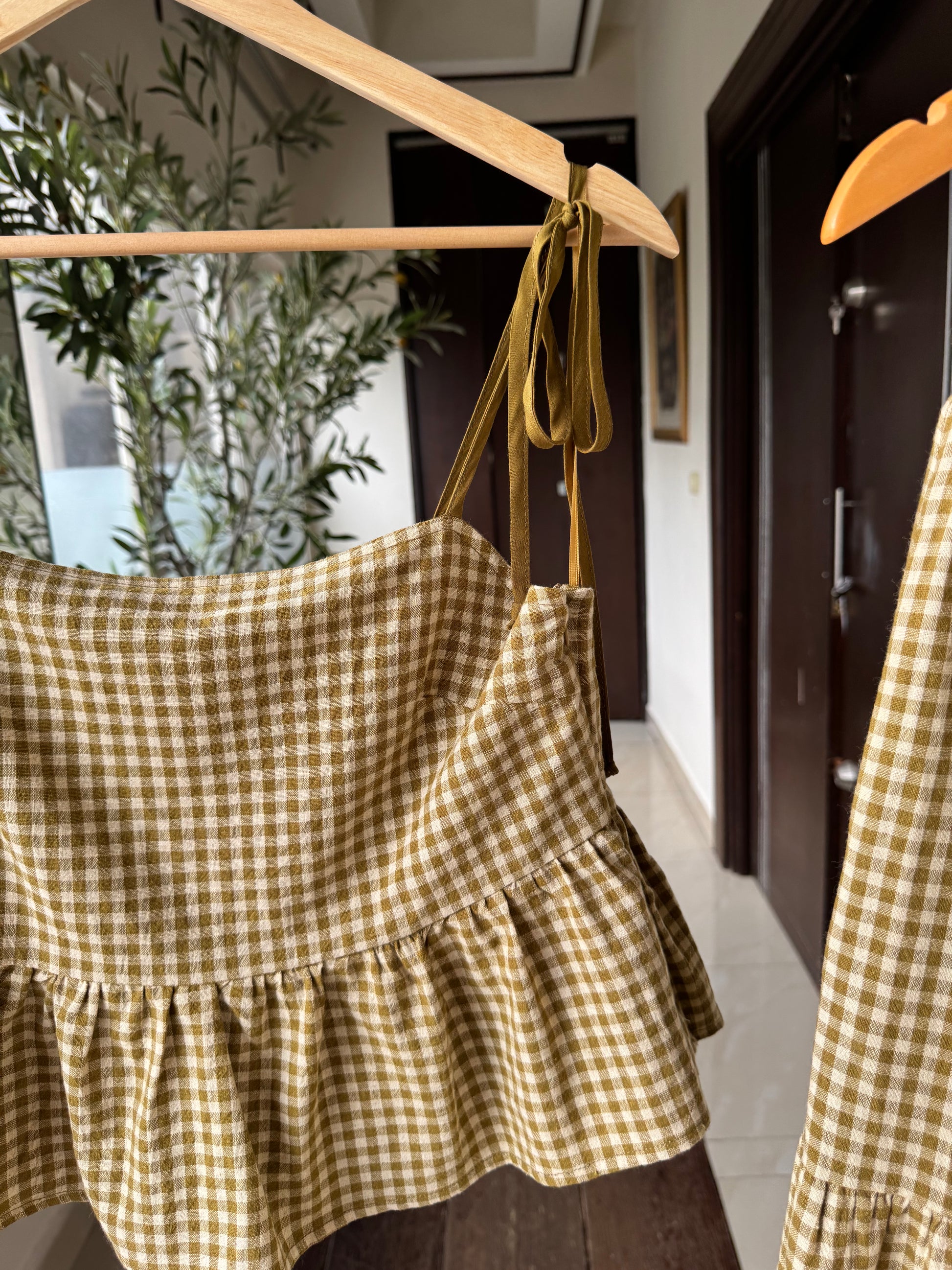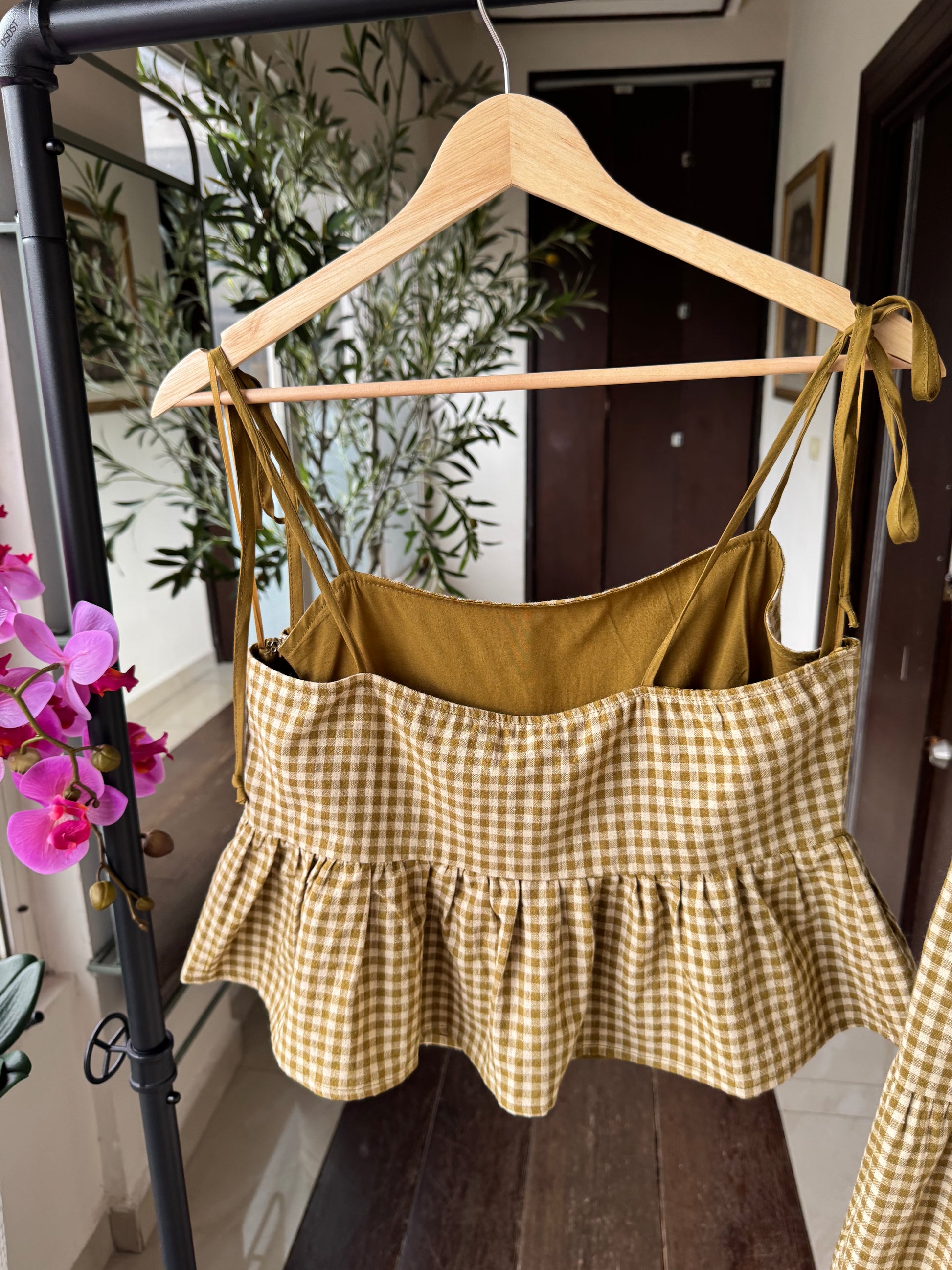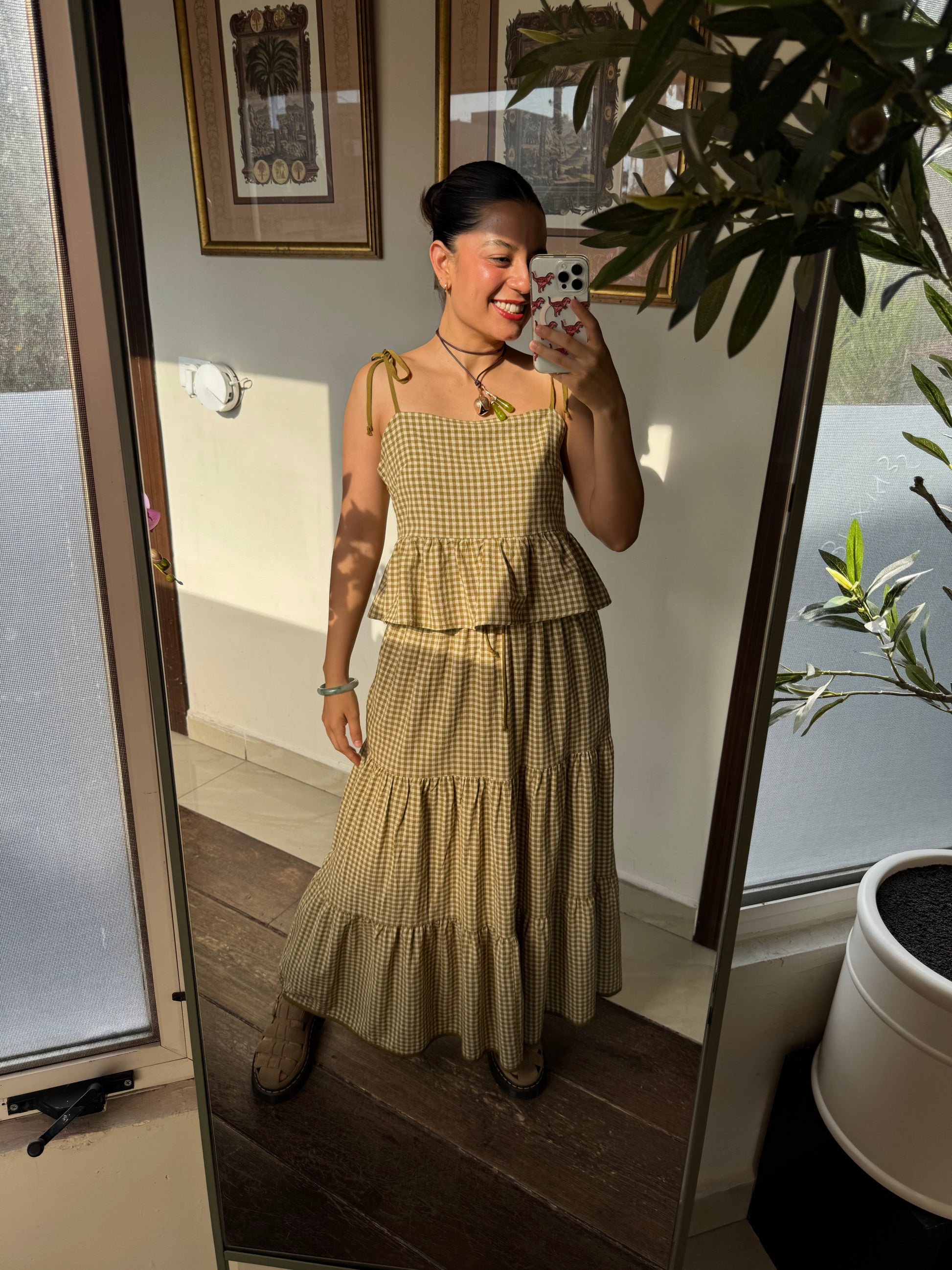 SET BLUSA Y FALDA MIDI, VERDE A CUADROS